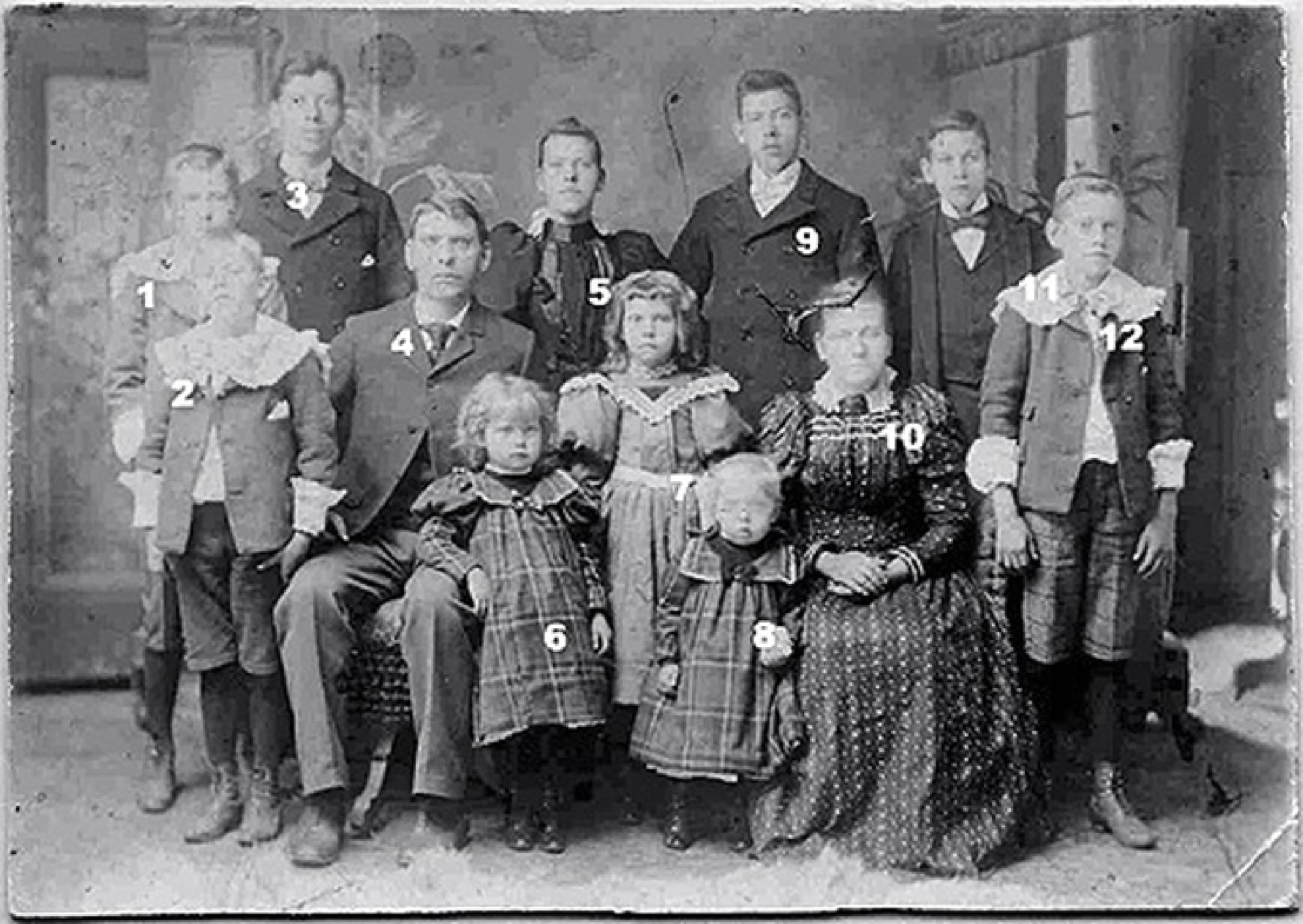 These are my Great-grandparents and 10 of their 12 children. The oldest child died in infancy in Sweden and the next oldest, Erik Eld, is for some reason absent from this family photo!