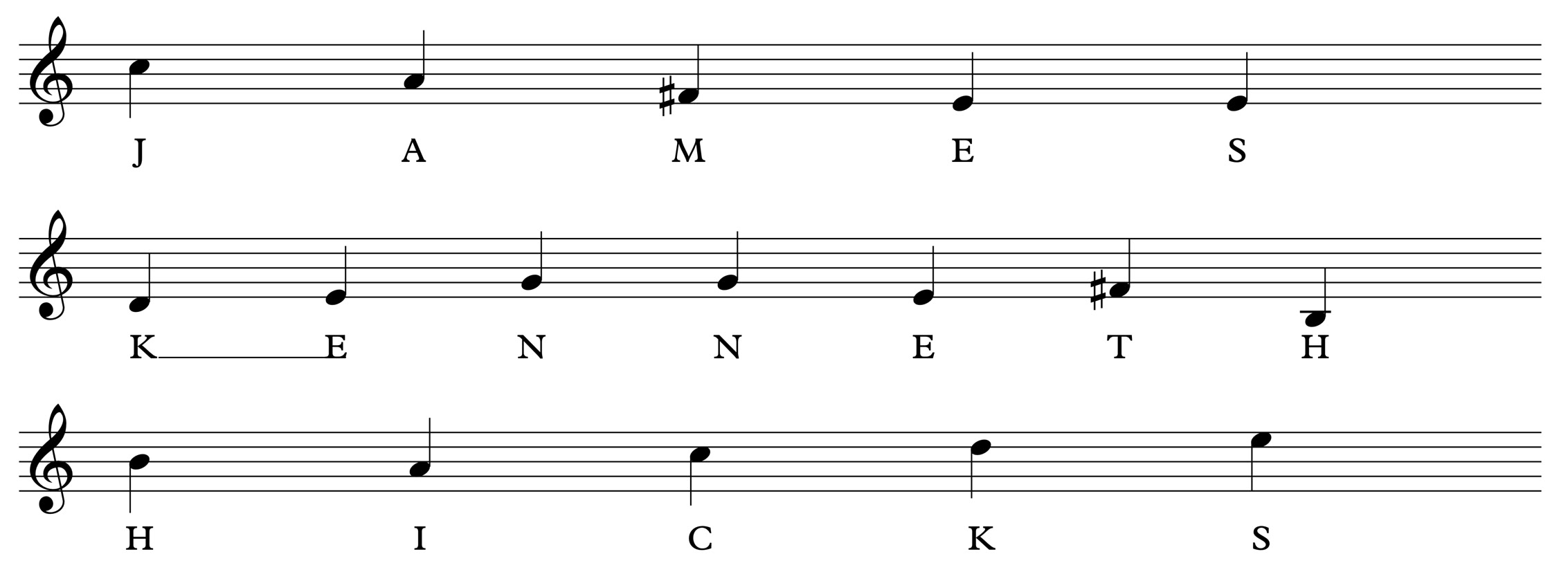 Using the letters from the full names, I determined the pitches to be used for each name. The unique character of each musically encrypted name inspires the style and historical influence of each miniature composition.