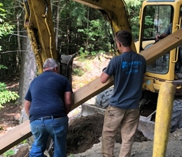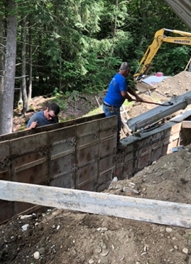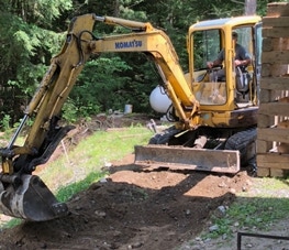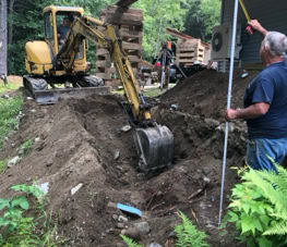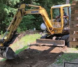 - The plumbing waste line goes out from wall 1_2, closer to post 1. In the septic line image, the septic storage tank os between the receptacle on the right and the stick in the ground. Waste is then pumped to a field that is about 70-80 feet east of the house.