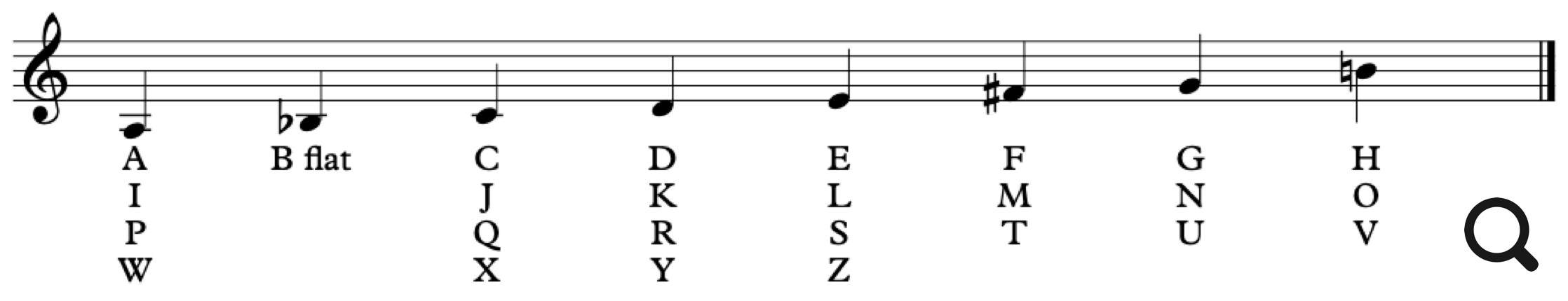 There are many ways to translate words into music. One approach is to assign each letter of the musical alphabet (A - G) with all the letters in the alphabet. Maurice Ravel used a German model for this, using the German system, where B natural is ‘H’ and B is B flat. The rest of the alphabet lines up as seen in the chart below.
