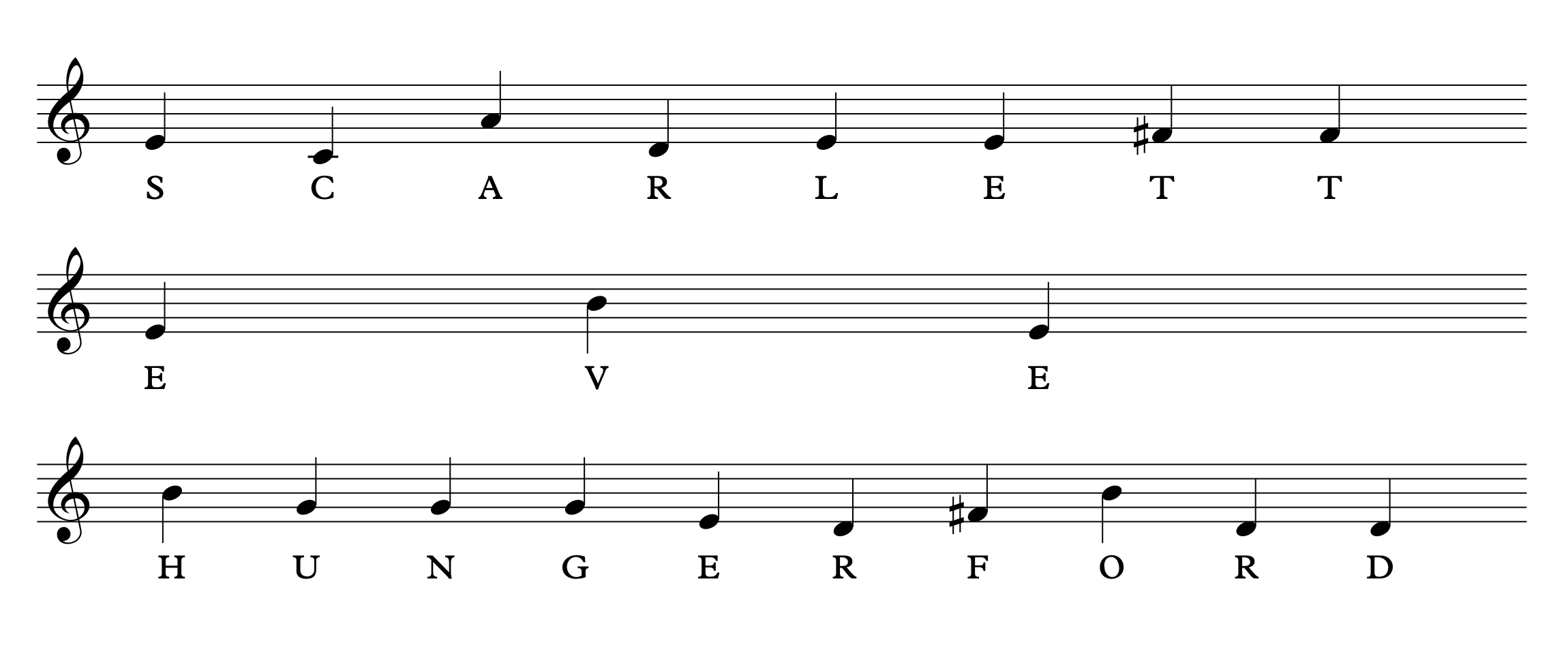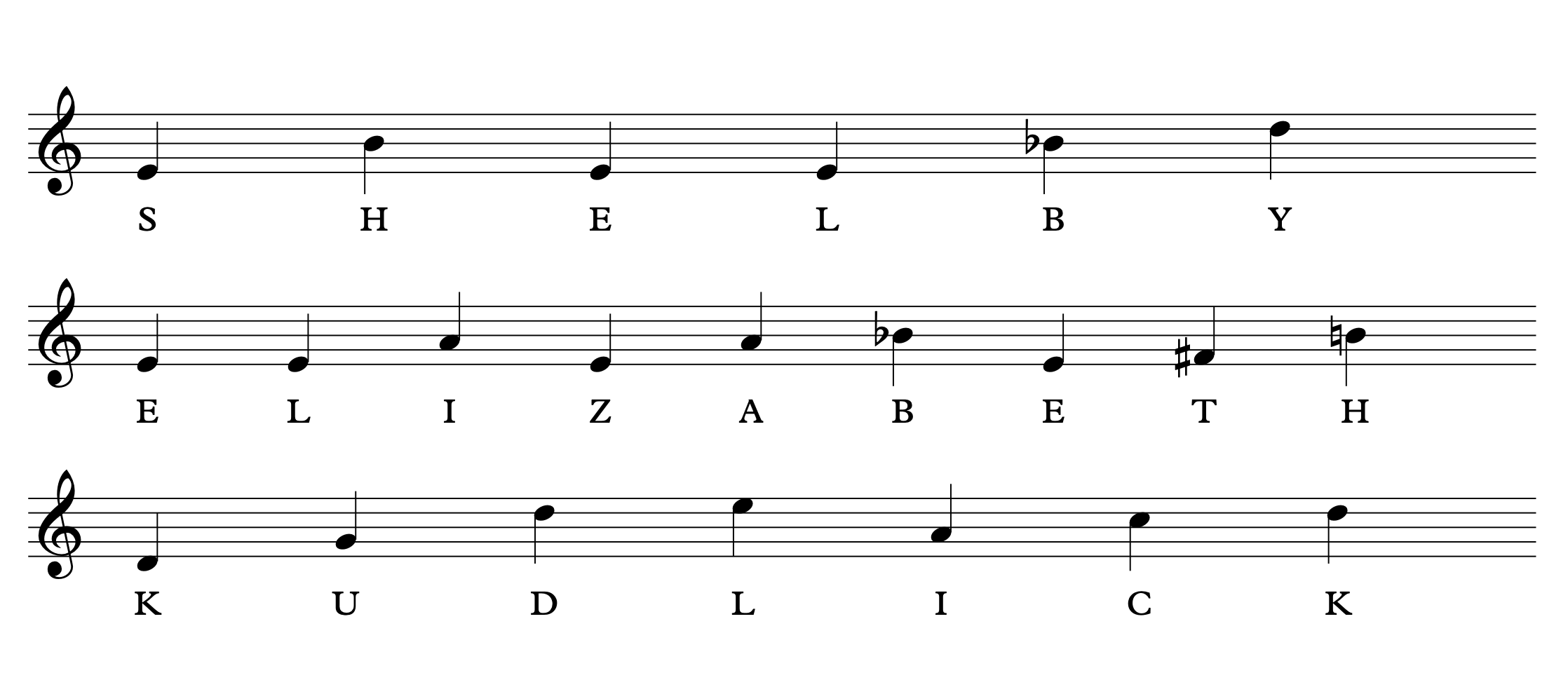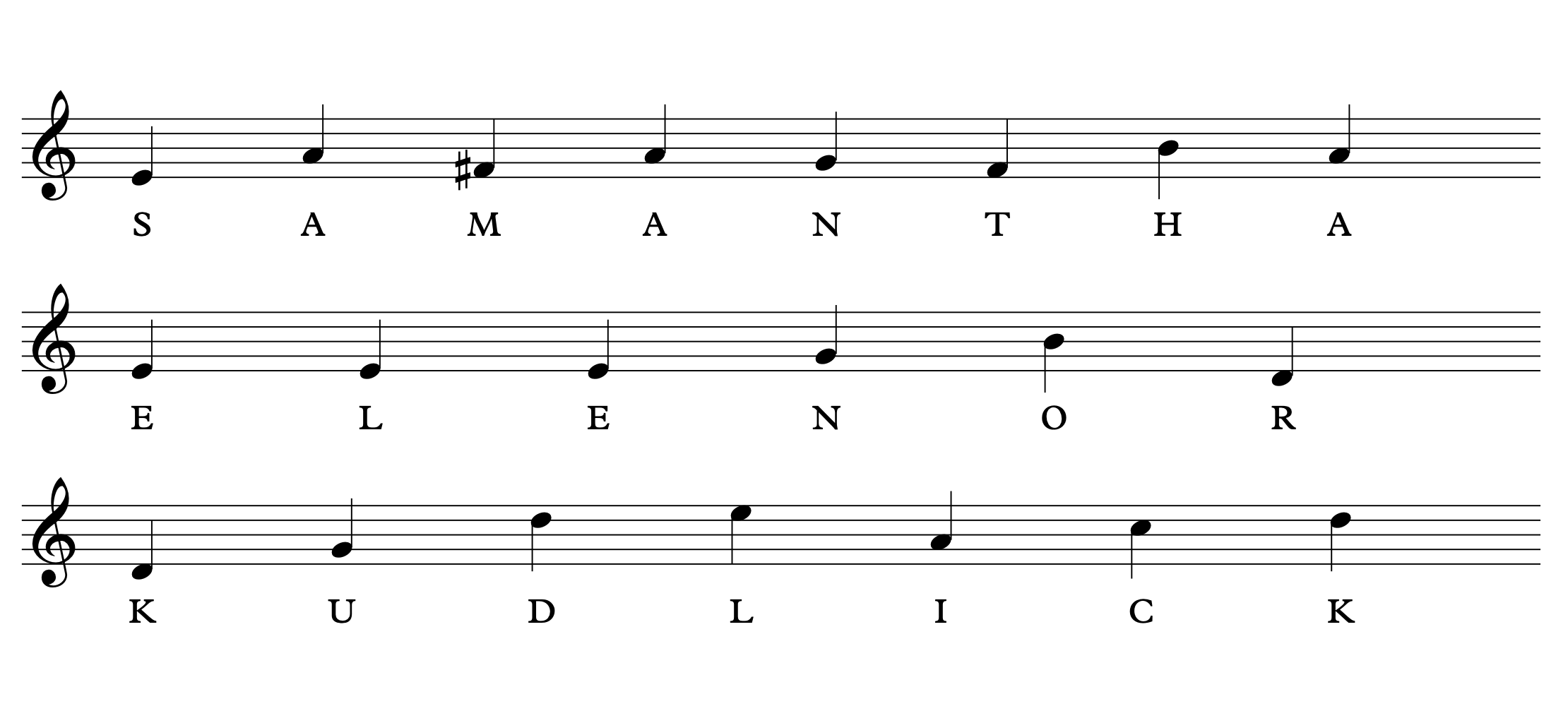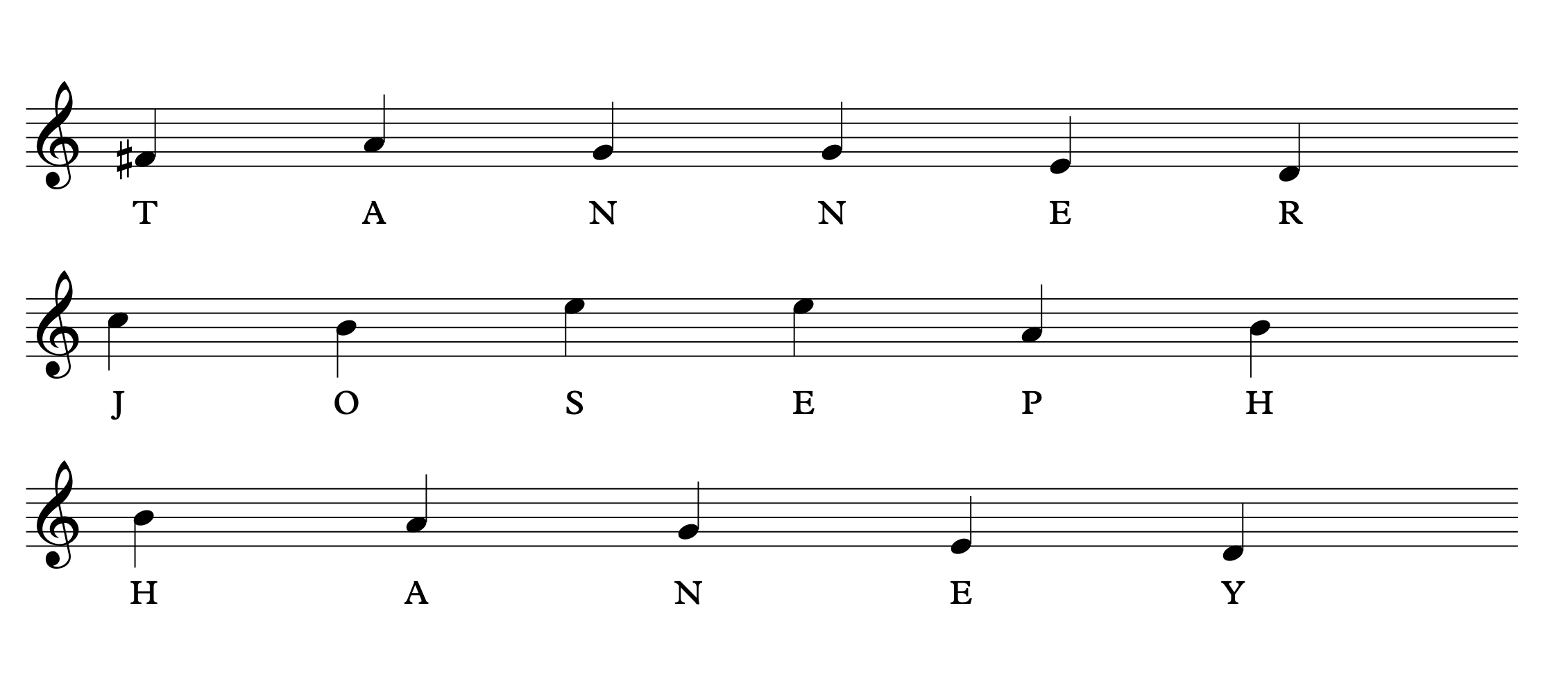 Using the letters from the full names, I determined the pitches to be used for each name. The unique character of each musically encrypted name inspires the style and historical influence of each miniature composition.